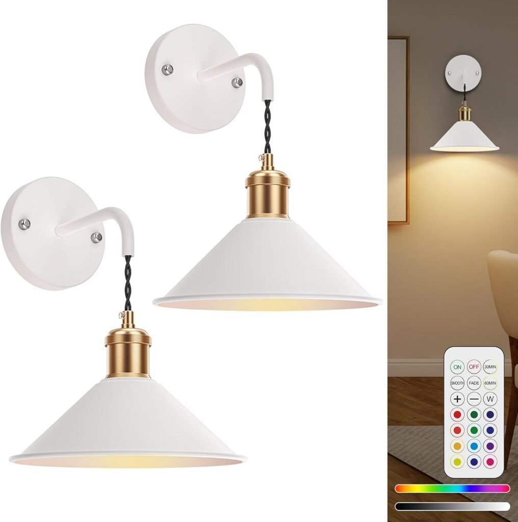 Battery Operated Wall Sconce Set of 2, Dimmable Wireless RGB Wall Sconce Decor with Remote Indoor Cordless Wall Lamp Lighting for Bedroom Living Room Hallway