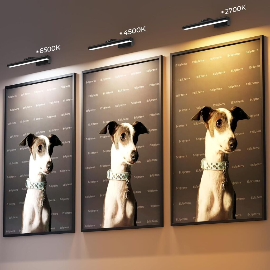 • High Brightness & Adjustable: Eclipterra picture lights for wall comes with 24 dual SMD LEDs that provide 300LM of brightness, ensuring optimal lighting for your artwork. Perfect as a light pictures on wall, painting and gallery lights. CRI >95% ensures superior color reproduction and reduces eye fatigue. Also, this wireless picture light provides 3 color temperatures for you to choose. You can also adjust the brightness to enhance the ambiance of the picture or illuminate framed photos. Eclipterra wall lights for pictures provides many possibilities to you life.