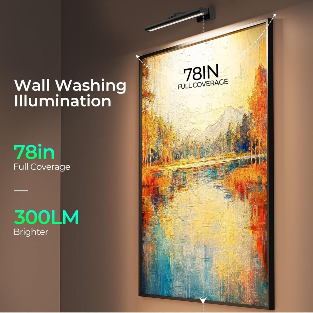 • Full Coverage Illumination: Eclipterra wall picture light adopt advanced wall-washing lighting technology to provide 30% more lighting coverage than others. Ensuring even lighting from edge-to-edge, no glare or flicker. Allows you illuminate paintings from 10-80in, adding a touch of elegance to your space.